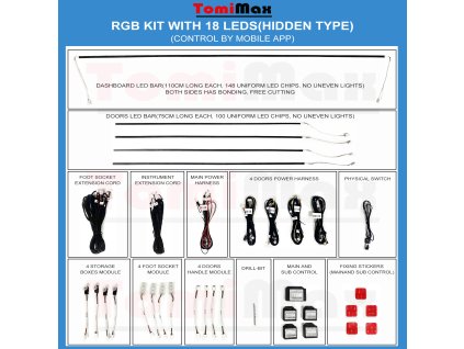 V naší nabídce najdete ambientní osvětlení interiéru auta vhodné pro téměř jakýkoliv model a typ vozidla. K dispozici jsou jak jednoduché světelné pásky, tak moderní RGB sady s dálkovým ovládáním nebo možností volby barvy. Podsvícení je vhodné do prostoru nohou, dveří nebo středové konzole.