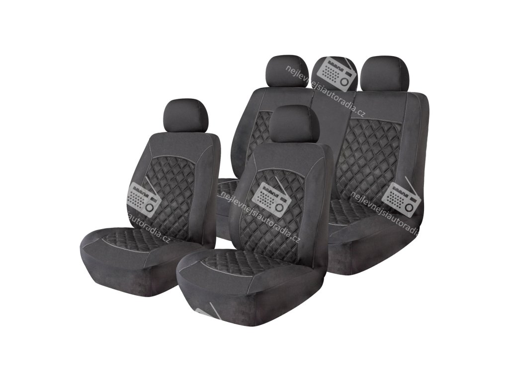 Kompletní sada potahů na autosedačky pro přední i zadní část osobního vozidla.