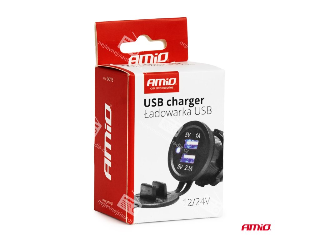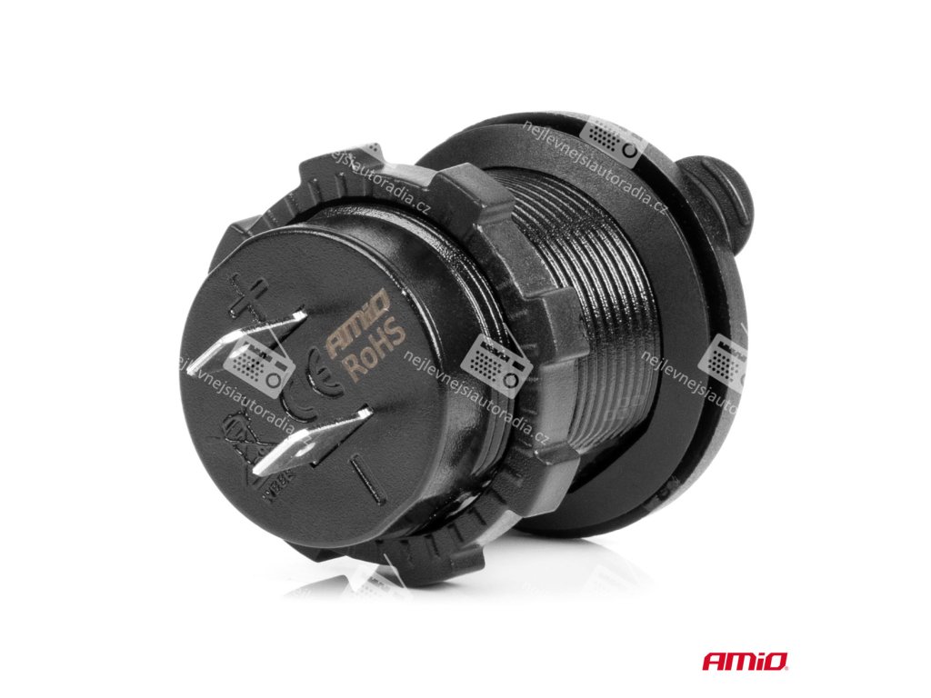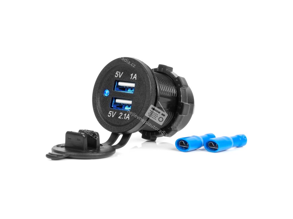 • Výstup: 5V 3,1A duální • LED indikátor • Velikost: vnější průměr 36,7mm, průměr závitu 28,5mm, hloubka 51,3mm. • Průměr montážního otvoru: 29 mm