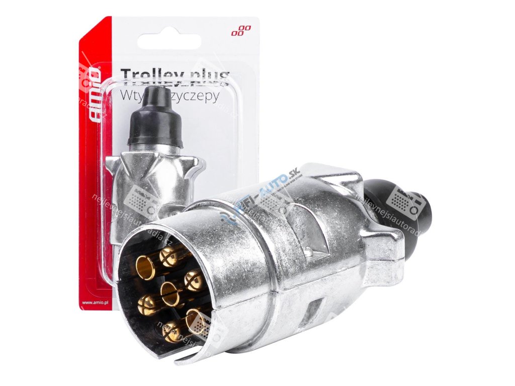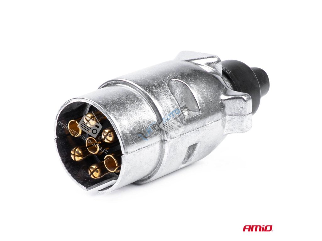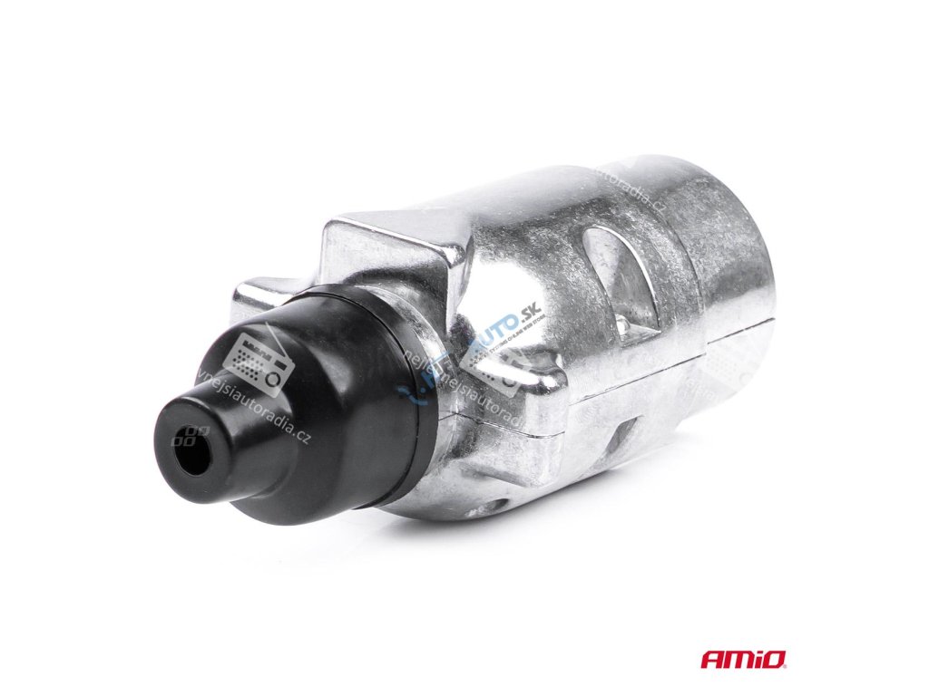 Hliníková 7-pinová zástrčka přívěsného vozíku určená pro 12V i 24V elektroinstalaci.